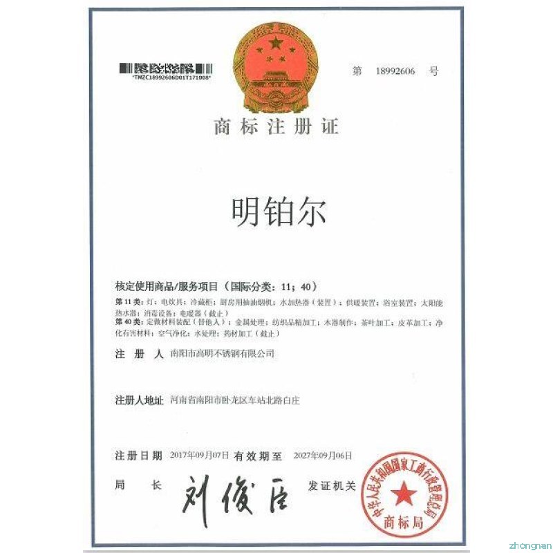 明鉑爾?國家商標(biāo)知識(shí)產(chǎn)權(quán)榮譽(yù)證
